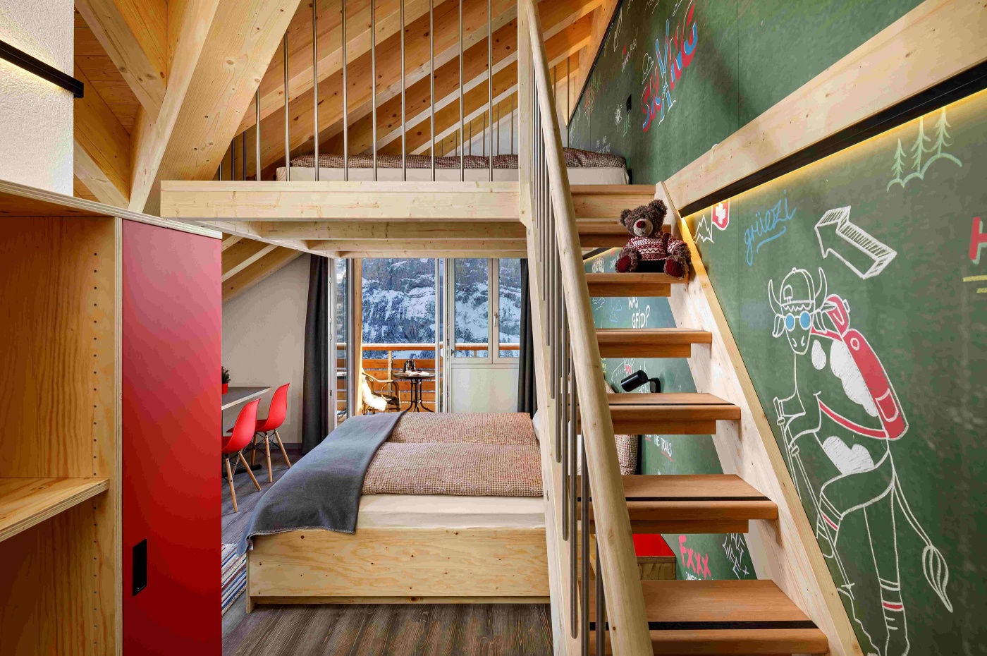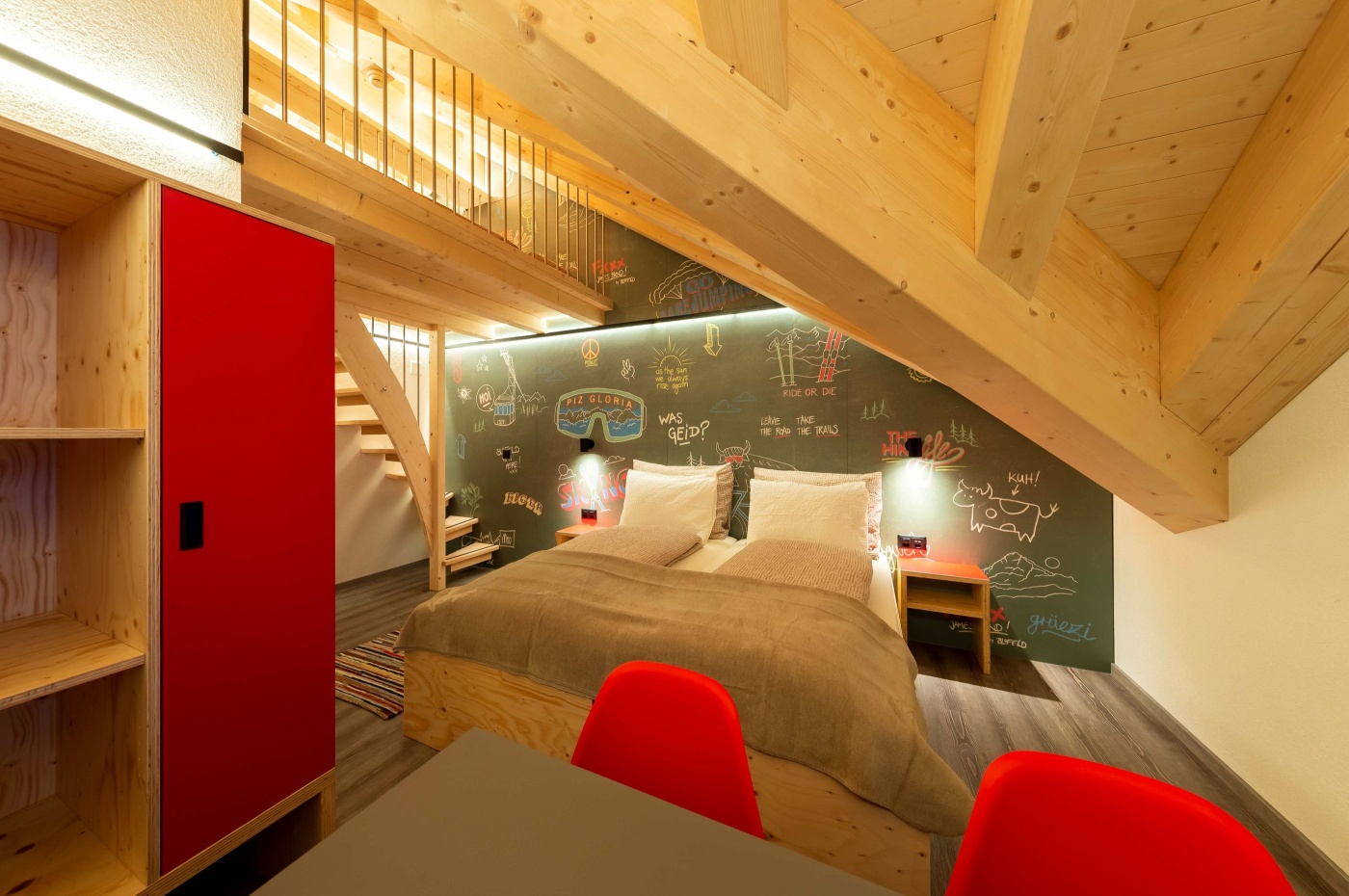 Une exploitation rentable a toujours été un grand défi pour l'Eiger Guesthouse et ses 12 chambres. C'est pourquoi la famille propriétaire a décidé d'agrandir l'établissement en construisant une extension en bois de trois étages comprenant neuf chambres. Plus de 80% des commandes ont pu être passées à des entreprises de construction locales et régionales. Les nouvelles chambres au design mural audacieux rencontrent un grand succès auprès des clients.