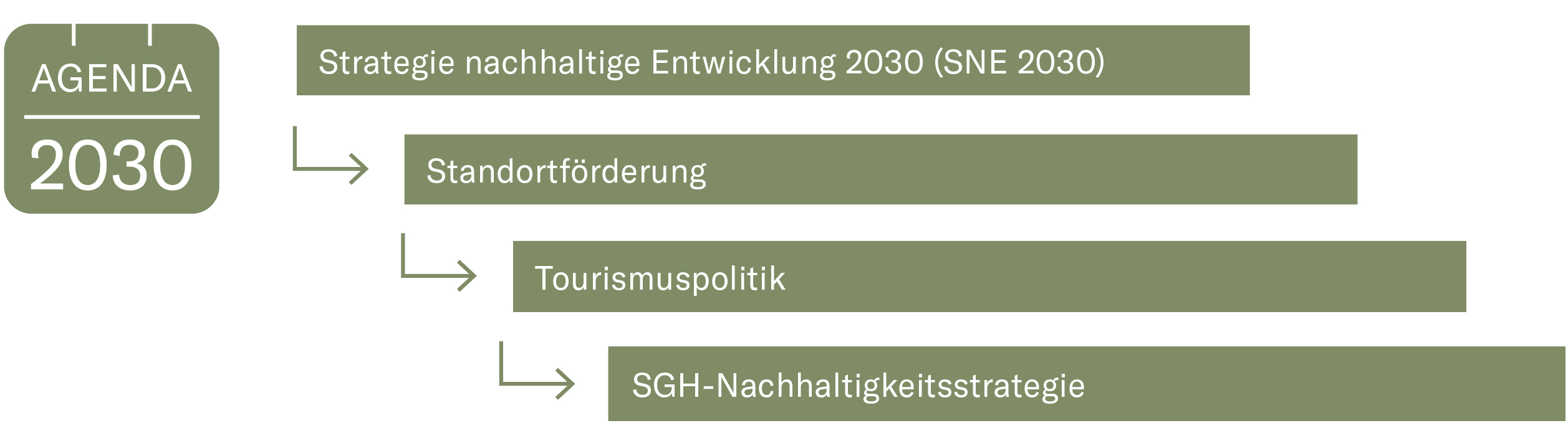 Die nachhaltige Entwicklung ist in der Schweizer Bundesverfassung als Staatszweck verankert (Art. 2 und 73 BV). Im Rahmen der SGH-Gesetzesrevision wird die wirtschaftliche Nachhaltigkeit ergänzt um die Dimensionen der ökologischen und sozialen Nachhaltigkeit. Der entsprechende Gesetzesartikel (neu Art. 2 des Bundesgesetzes über die Förderung der Beherbergungswirtschaft) soll wie folgt lauten: