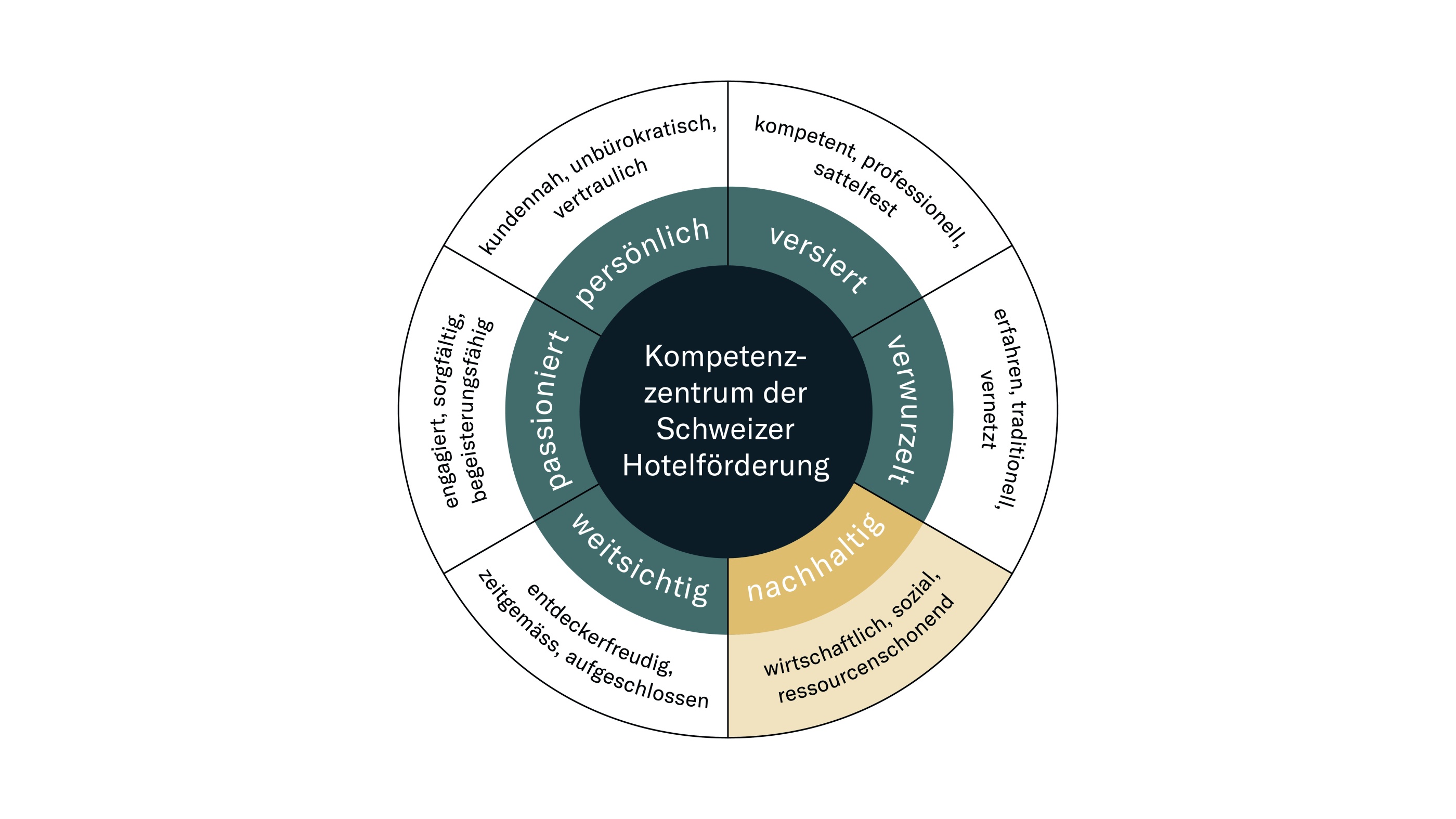Die vorgesehene Änderung des Gesetzesartikels (neu Art. 2 des Bundesgesetzes über die Förderung der Beherbergungswirtschaft) gibt die Mission der SGH vor. Als Basis für die Umsetzung diente das bestehende SGH-Werterad, welches um die Komponente Nachhaltigkeit erweitert wurde.